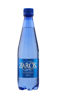 Φιάλη PET 500ml με ανθρακούχο μεταλλικό νερό ZARO'S. Διατίθεται σε συσκευασία φίλμ 6 τεμαχίων με 252 φιάλες στην παλέτα