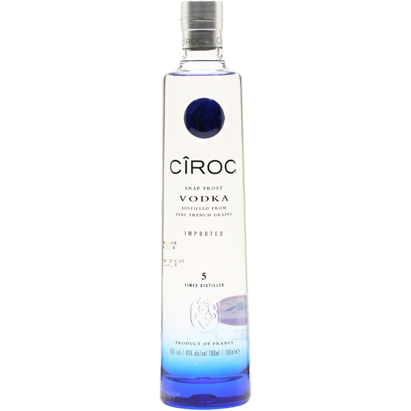 Η Ciroc είναι premium γαλλική βότκα και παράγεται αποκλειστικά από σταφύλια. Θεωρείται η σαμπάνια της βότκας καθώς αποστάζεται 5 φορές. Έχει εξευγενισμένα αρώματα εσπεριδοειδών, με ελαφριά, απαλή γεύση σταφυλιού. Ιδανική για την παρασκευή "On the Rocks" Μαρτίνι και "Mixability".
